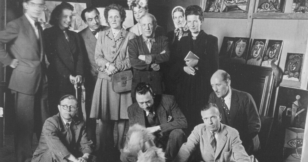 Foto: Em cima (esquerda à direita): Jacques Lacan, Cecile Eluard, Pierre Reverdy, Louis Leiris, Pablo Picasso, Fanie de Campan, Valentine Hugo, Simone de Beauvoir, Brassai Em baixo: Jean-Paul Sartre, Albert Camus, Michel Leiris, Jean Abier (foto: Gilberte Brassai).