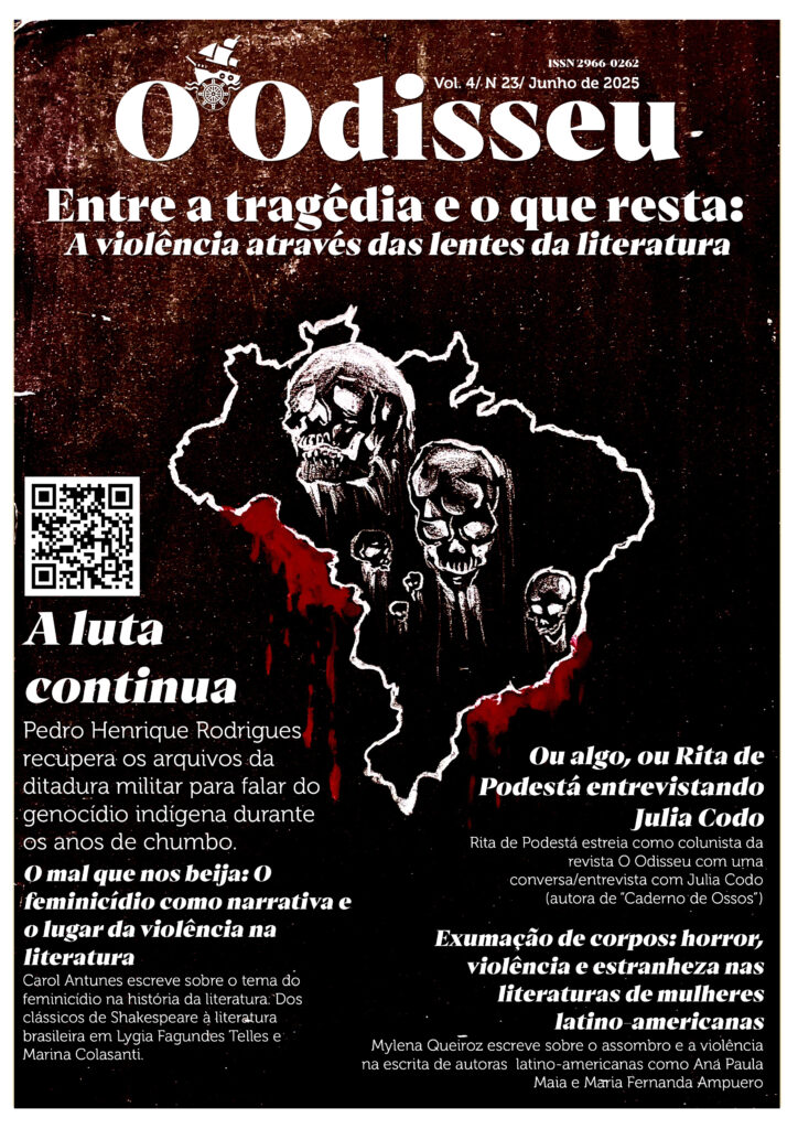 Revista O Odisseu – v.4, n.25, out. 2025: A literatura para além das fronteiras: o campo transnacional Vol. 4/ N 24/ Agosto de 2025: O que há de poesia para o agora? Vol. 4/ N 23/ Junho de 2025: Entre a tragédia e o que resta: A violência através das lentes da literatura. V. 4/ N 22/ Abril de 2025: Quem tem medo dos identitários? Vol. 4/ N 21/ Fevereiro de 2025: Entre o passado e o futuro: os clássicos Vol. 3, N. 19/ Outubro de 2024 – A (im)possibilidade da tradução V. 3/ N. 17/ Junho de 2024: Utopia, distopia e retropia V. 3, N. 15/ Fevereiro de 2024: O que é ser artista? V. 3, N. 2/ Dezembro de 2024 – Narrativas da ditadura V. 3, N. 18/ Agosto de 2024: Decolonização & Contracolonização V. 3, N. 16/ Abril de 2024: Literatura e Alteridade